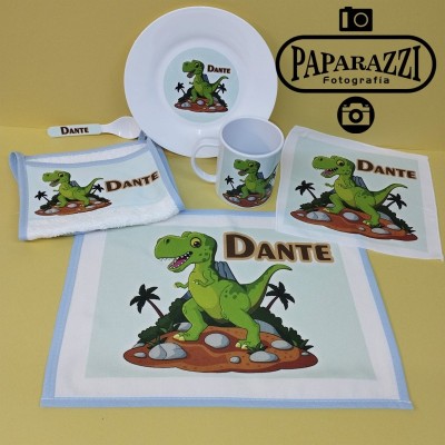 Mantel, servilleta y toalla. Taza, plato y cuchara.